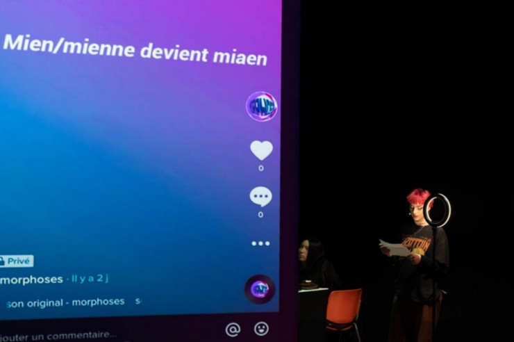 Aujourd’hui, une grande partie de la jeunesse s’exprime sans filtre sur les réseaux sociaux. _morphoses signifie donner forme, si l’adolescence est le temps bouleversant des mues, des anamorphoses psychiques, comme des métamorphoses physiques, elle est également le moment d’une expression aussi bien libre que codée, et dont les réseaux sociaux sont le mégaphone. Mises au défi, performances, tutoriaux, coups de gueule, dragues et provocations, les prises de parole semblent atomisées mais elles forment un monde en soi. Sur scène, huit jeunes viennent, en prise directe avec le public, raconter leurs histoires connectées, et les grandes questions qui animent leurs vies.