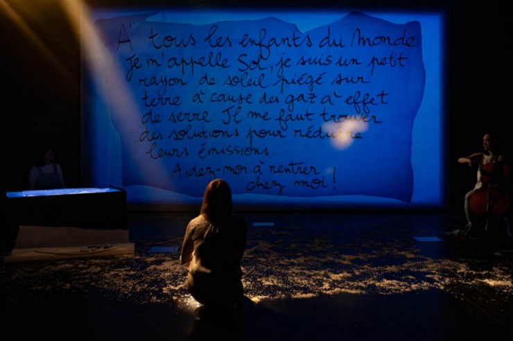Une commande du Théâtre Am Stram Gram | Adaptation de Sol au pôle Nord de Célia Sapart, illustré par Karo Pauwels | Direction artistique & mise en scène : Emilie Blaser | Texte, dramaturgie & collaboration artistique : Yann Verburgh | Jeu : Emilie Blaser, Joëlle Mauris, Karo Pauwels, Célia Sapart | Collaboration scientifique : Célia Sapart | Scénographie et univers visuel : Karo Pauwels | Lumière et vidéo : Gaël Chapuis | Costumes : Anna Pacchiani | Création musicale : Joëlle Mauris | Régie son : Jean Faravel | Régie lumière et vidéo : Alexandrine Marquet